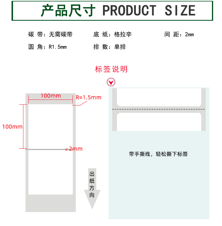 【標(biāo)簽間距】2mm、圓角R=1MM、卷芯寬度:40mm
