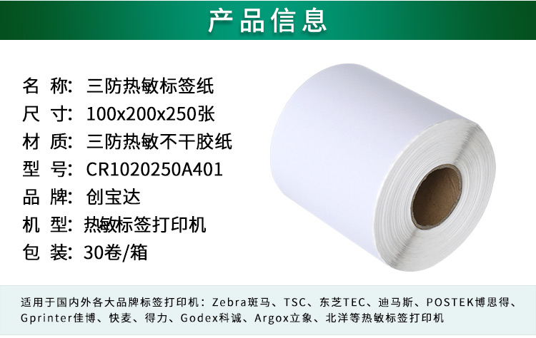 【規(guī)格】卷裝,帶手撕線100*200*250張(足數(shù):250張)一箱裝30卷