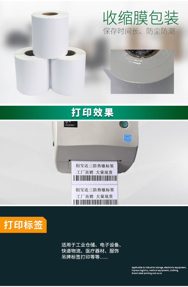 適合不同氣候地區(qū)使用,適用于亞馬遜FBA、郵政國際物流標(biāo)簽、郵政包裹、EBAY、速賣通、遞四方、EUB標(biāo)簽紙、電商標(biāo)簽,五金塑膠等