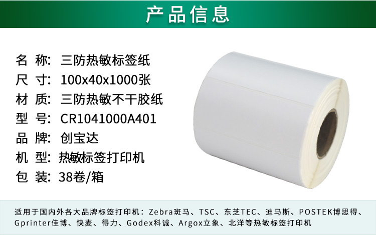 【規(guī)格】100x40x1000張單排(足數(shù):1000張)一箱裝38卷