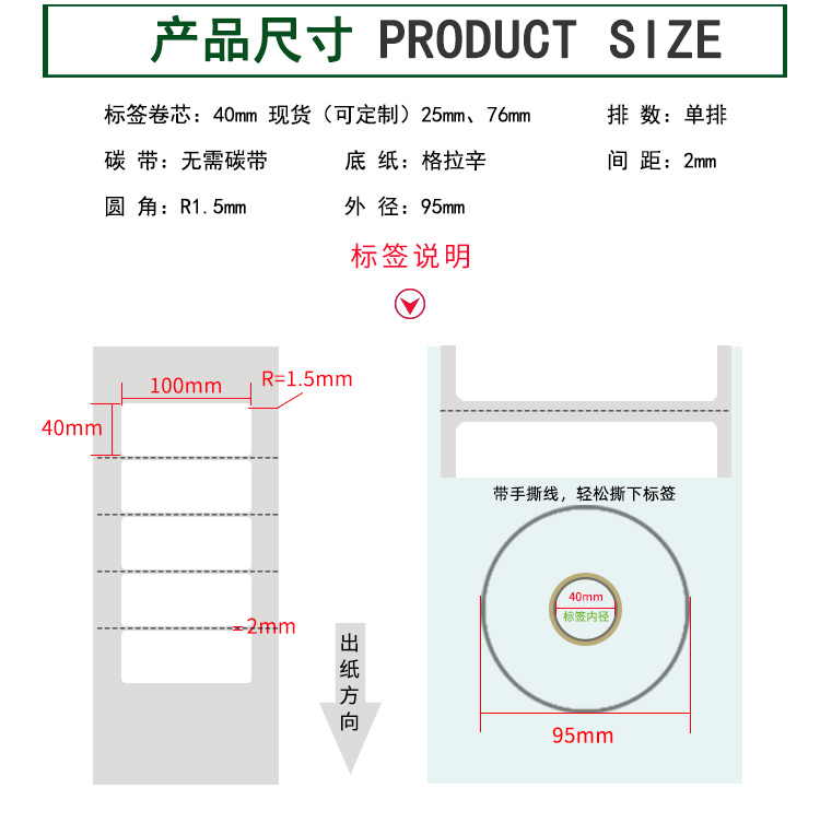 【標(biāo)簽間距】2mm、圓角R=1MM、卷芯寬度:40mm