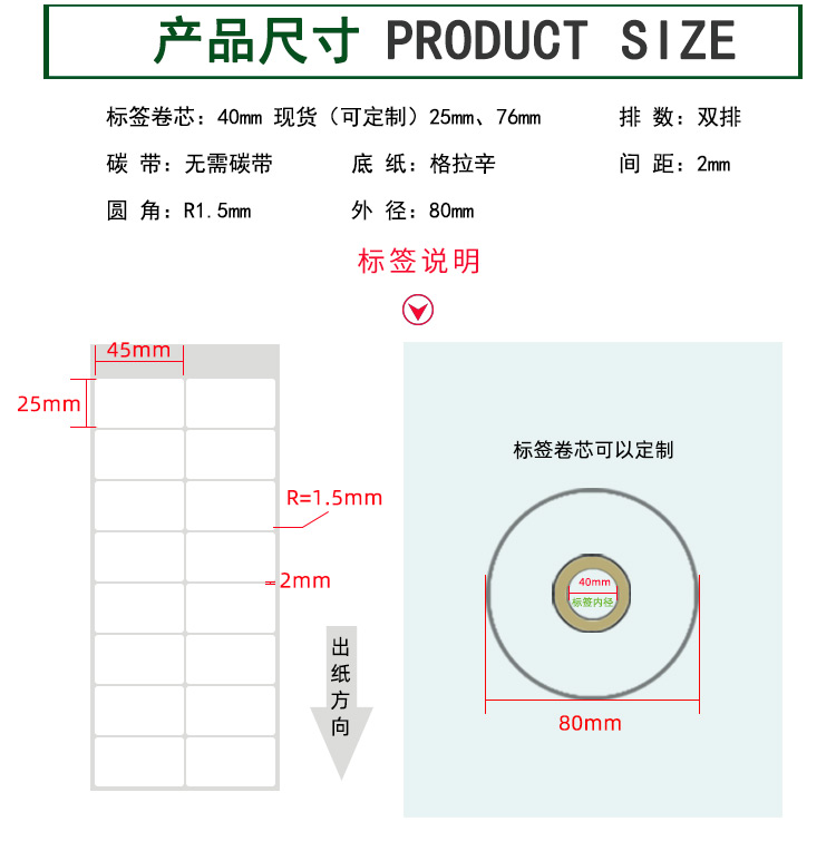 【標(biāo)簽間距】2mm、圓角R=1MM、卷芯寬度:40mm