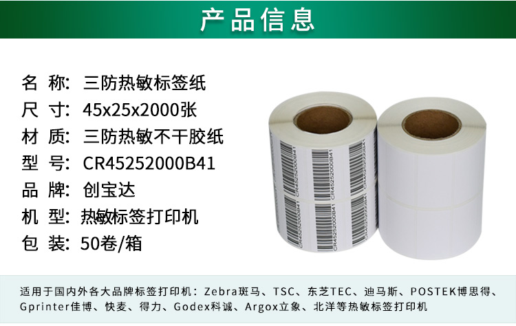 【規(guī)格】卷裝45*25*2000張(足數(shù):2000張)一箱裝50卷