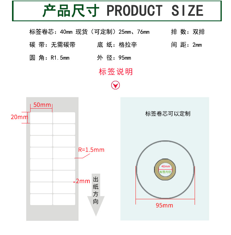 【標(biāo)簽間距】2mm、圓角R=1MM、卷芯寬度:40mm