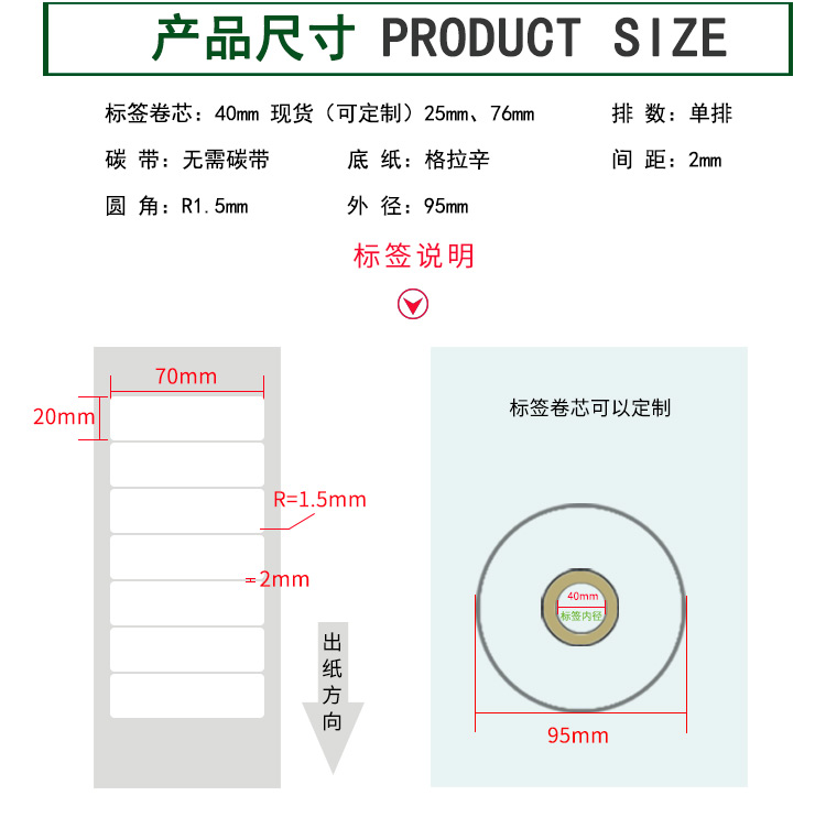 【標簽間距】2mm、圓角R=1MM、卷芯寬度:40mm