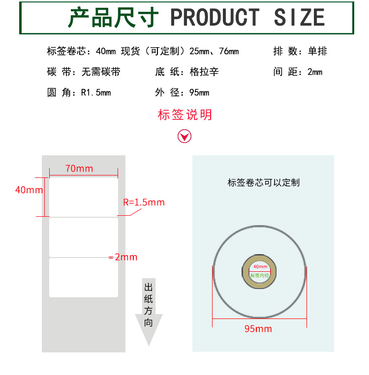 【標(biāo)簽間距】2mm、圓角R=1MM、卷芯寬度:40mm
