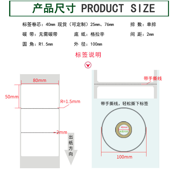 【標(biāo)簽間距】2mm、圓角R=1MM、卷芯寬度:40mm