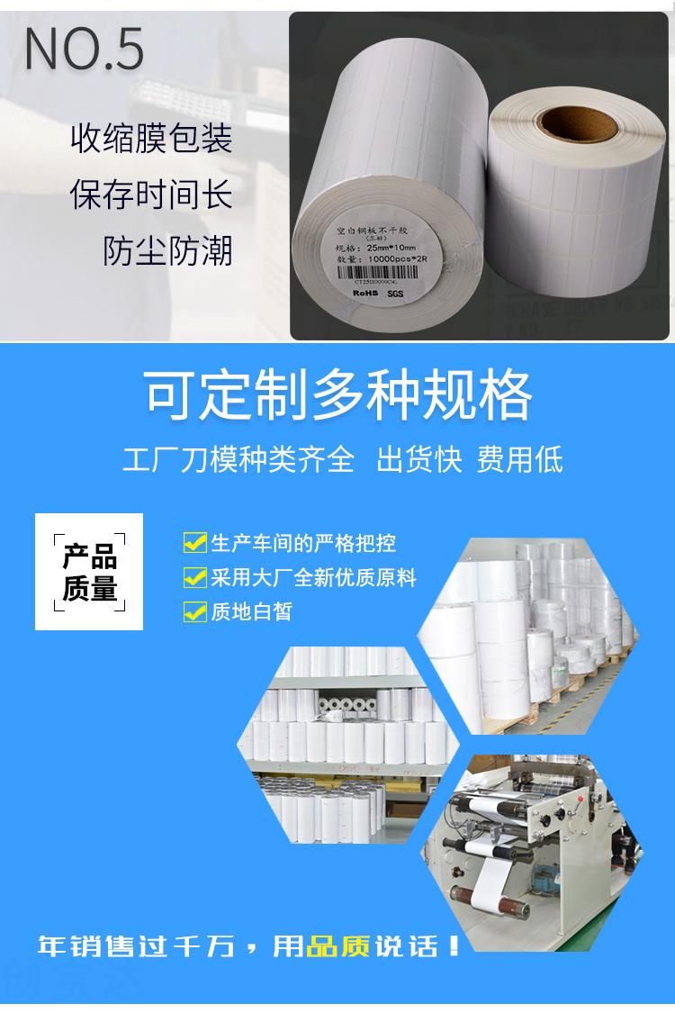 適合不同氣候地區(qū)使用,適用電子電器、五金塑膠、服裝、醫(yī)藥、日化、食品、商超、倉儲物流、資產(chǎn)管理、條碼標識、外箱貼紙等長期保存的產(chǎn)品標簽及外箱標簽同時也可以用于長時間保存(配合碳帶)的亞馬遜、郵政國際、物流標簽、郵政包裹、EBAY、速賣通、遞四方、出口EUB標簽、出口電商等標簽