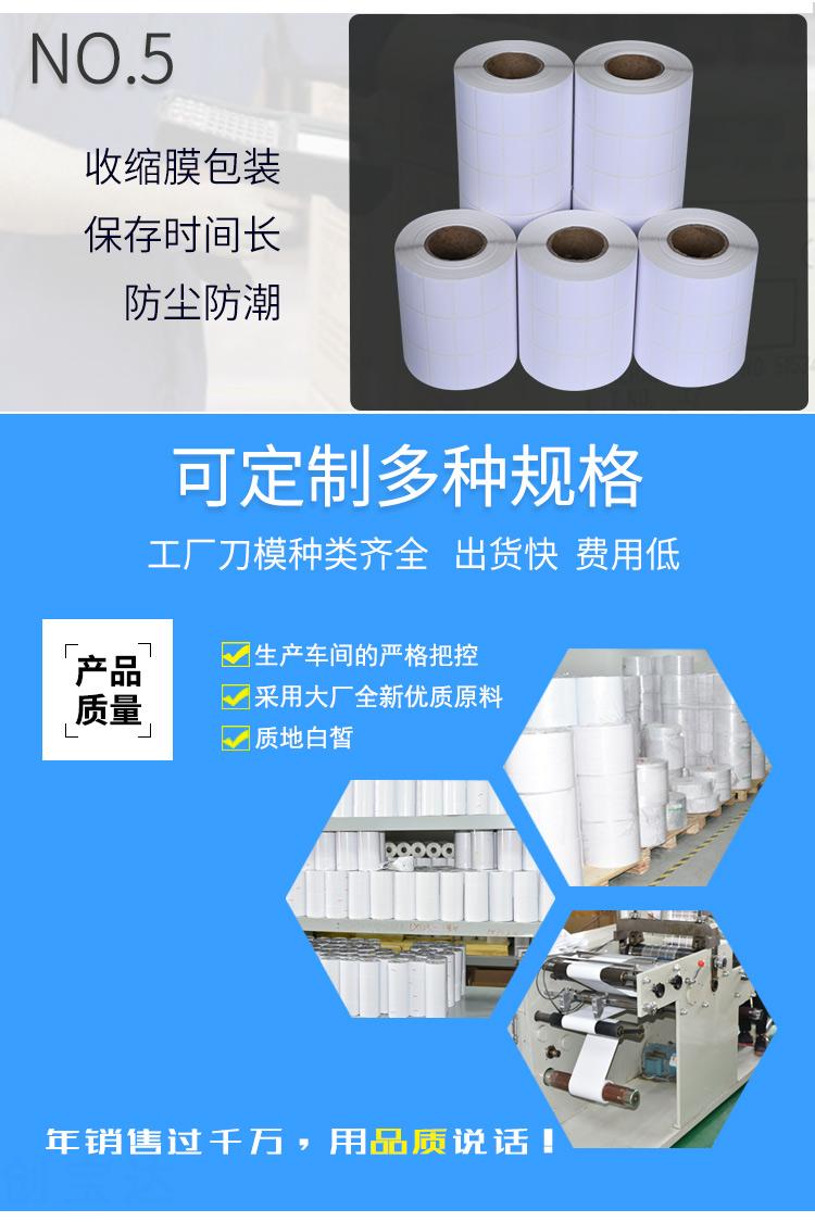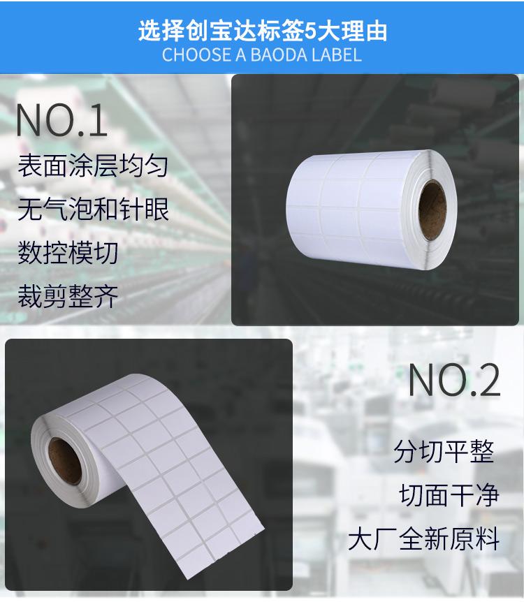 適合不同氣候地區(qū)使用,適用電子電器、五金塑膠、服裝、醫(yī)藥、日化、食品、商超、倉儲物流、資產(chǎn)管理、條碼標識、外箱貼紙等長期保存的產(chǎn)品標簽及外箱標簽同時也可以用于長時間保存(配合碳帶)的亞馬遜、郵政國際、物流標簽、郵政包裹、EBAY、速賣通、遞四方、出口EUB標簽、出口電商等標簽
