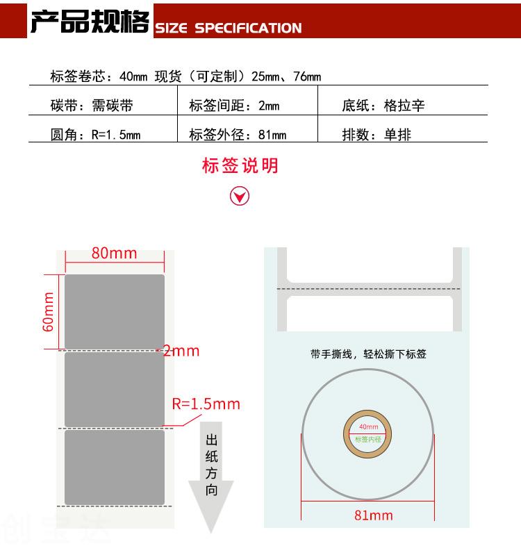 【規(guī)格】80mm*60mm*500張 36卷/箱